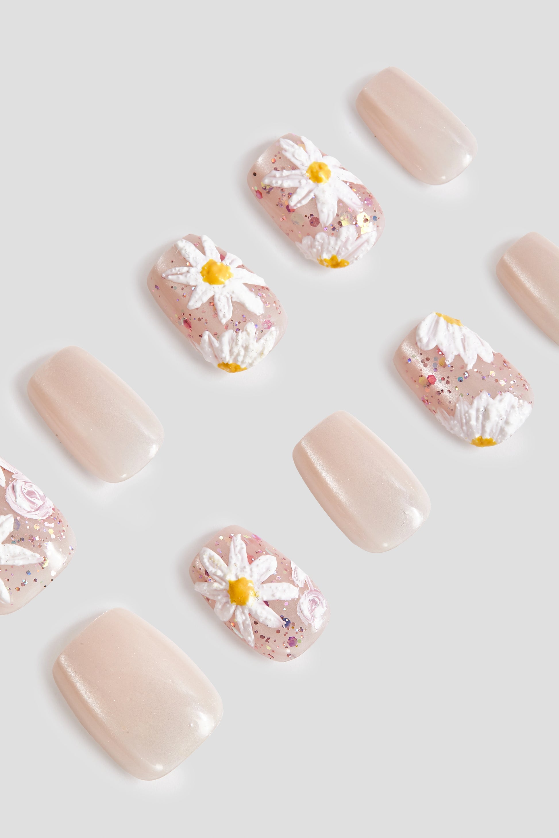 The delicate white flowers symbolize pure love and capture the essence of falling in love instantly. Make a statement with our elegant white nails and let your love shine through.