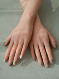 We use premium soft gel – not plastic – for a salon-grade look and feel. They're handcrafted for a seamless, ultra-glossy finish and designed to last 30+ days without lifting.