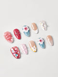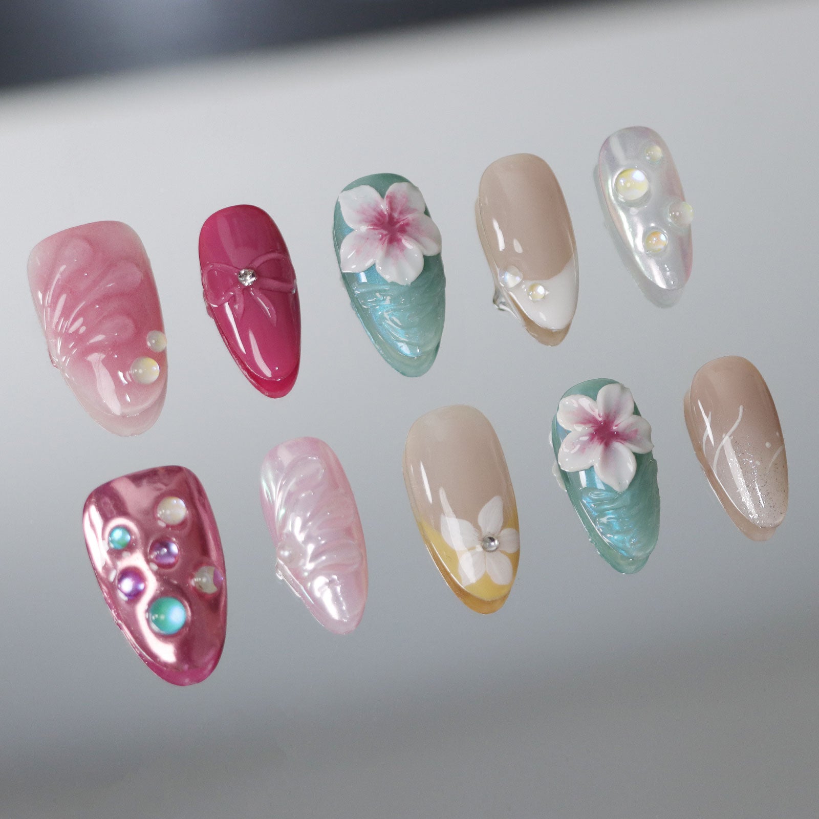 These vibrant, flowery Hawaiian-inspired nails capture the essence of sun-soaked beaches and swaying palms. Perfect for vacation selfies, pool parties, or bringing those holiday vibes to everyday life!