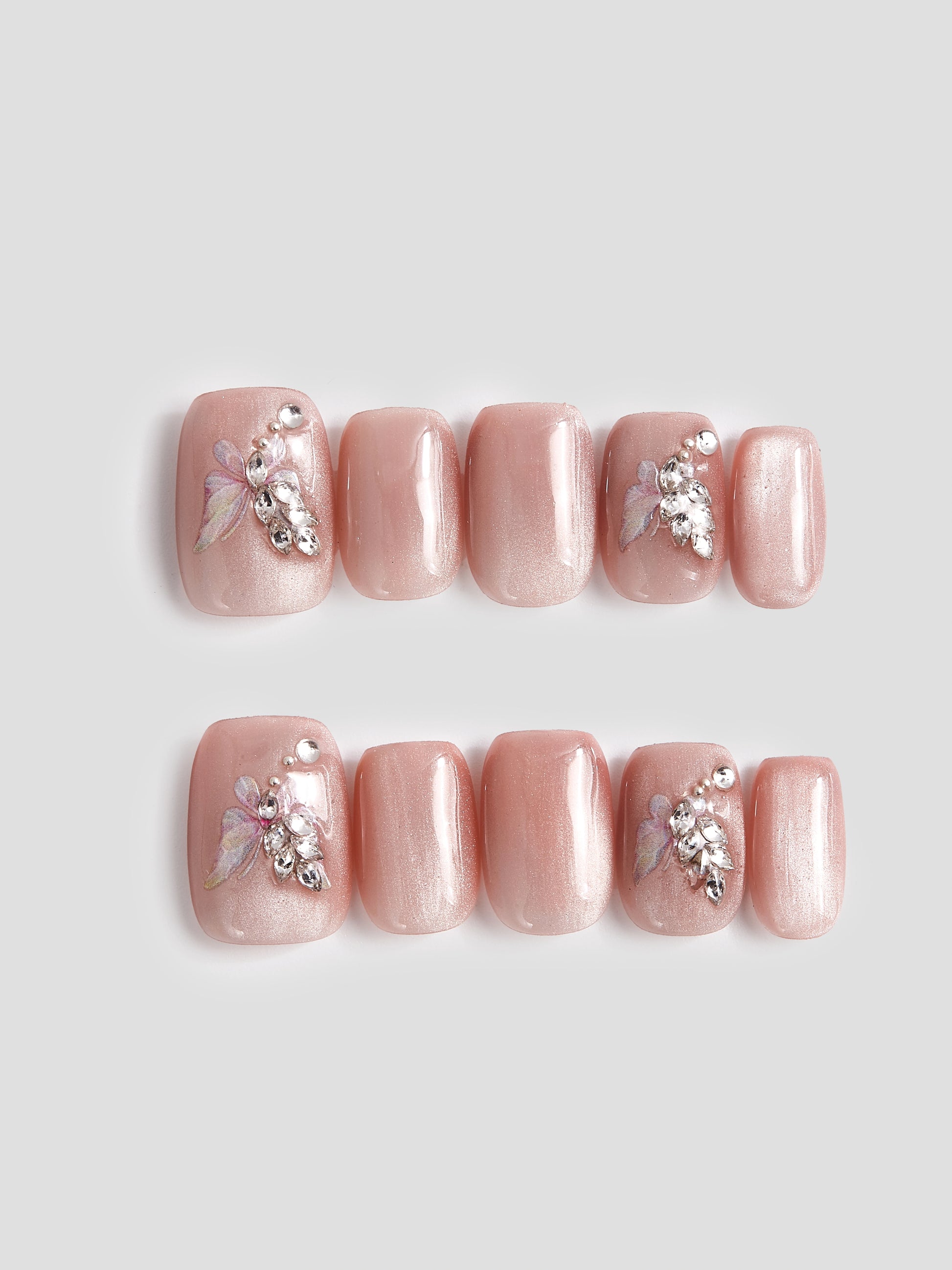 Featuring delicate pink cat eyed butterflies, these nails are perfect for tender ladies. Express your sweet and gentle side with confidence!