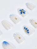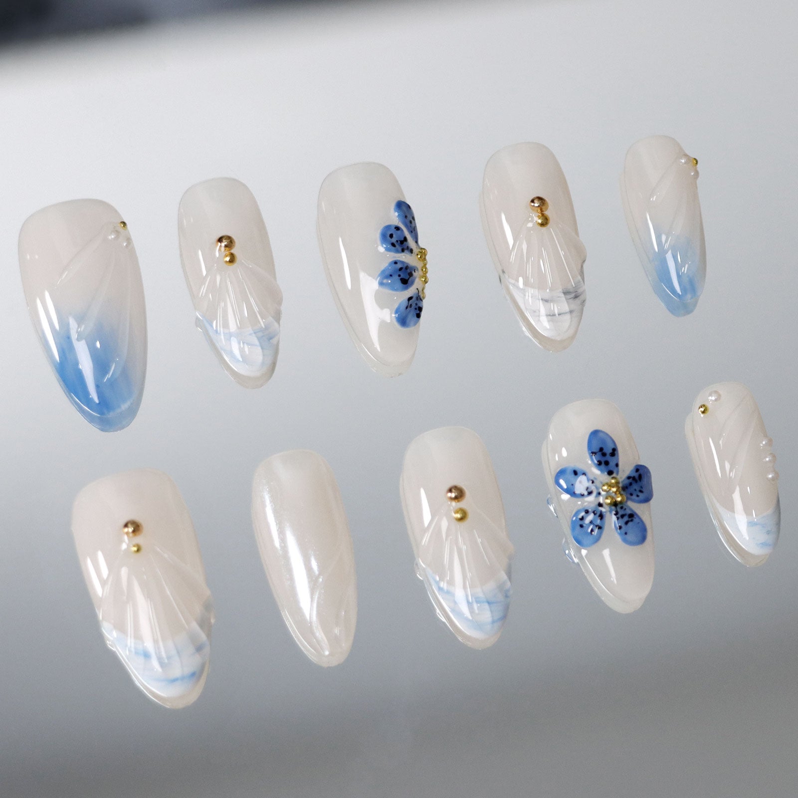 Featuring a crisp white base adorned with delicate hand-painted blue flowers, these nails evoke the gentle waves and blooming coastal gardens. Perfect for beach days, vacation getaways, or simply channeling ocean vibes wherever you are.
